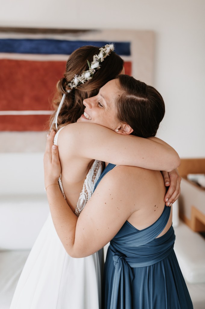 Um 5 Uhr morgens konnte ich nicht mehr schlafen. Diesmal nicht wegen unserer zweijährigen Tochter. Nein, es war dann doch die Aufregung und Vorfreude. DER Tag war endlich gekommen, das Wetter war perfekt, wir wussten, wir können alles so machen, wie wir es uns vorgestellt haben. Nach einem Kaffee und ein paar Bissen Croissant ging es mit dem Styling auch schon los. Meinen Mann durfte ich aus der Suite ausquartieren – meine Trauzeugin und ich konnten uns in aller Ruhe fertig machen und hatten richtig viel Spaß dabei :-) Ich habe mich noch nie so schön gefühlt, wie an diesem Morgen. Wir ließen die Korken knallen, haben angestoßen auf einen unvergesslichen Tag. Keine Sorge, mein Mann und sein Trauzeugen hatten es sich in der Zwischenzeit an der Hotelbar gemütlich gemacht ;-)